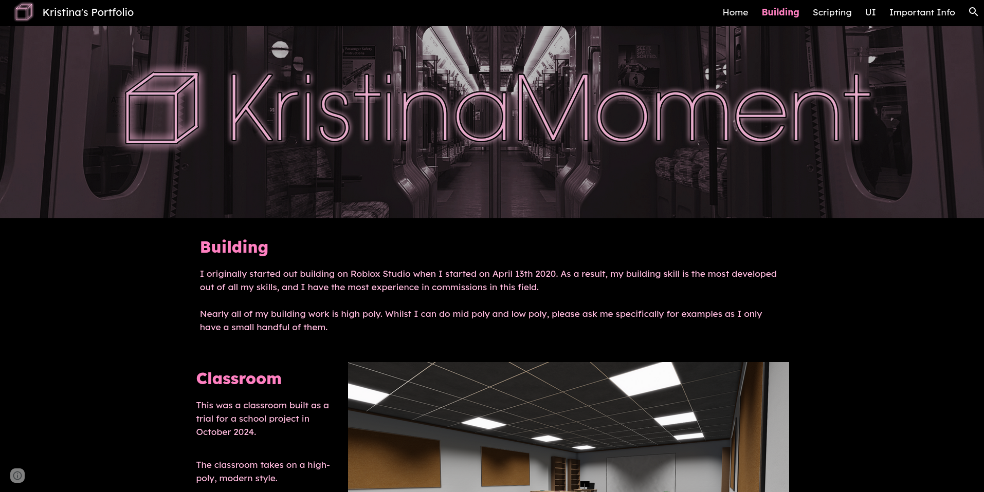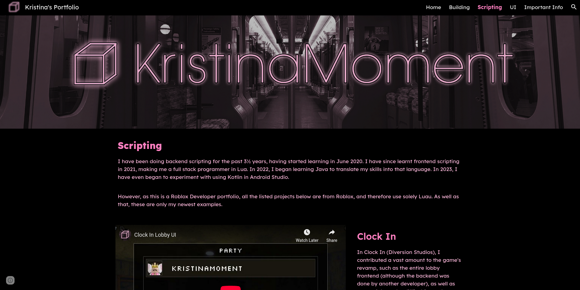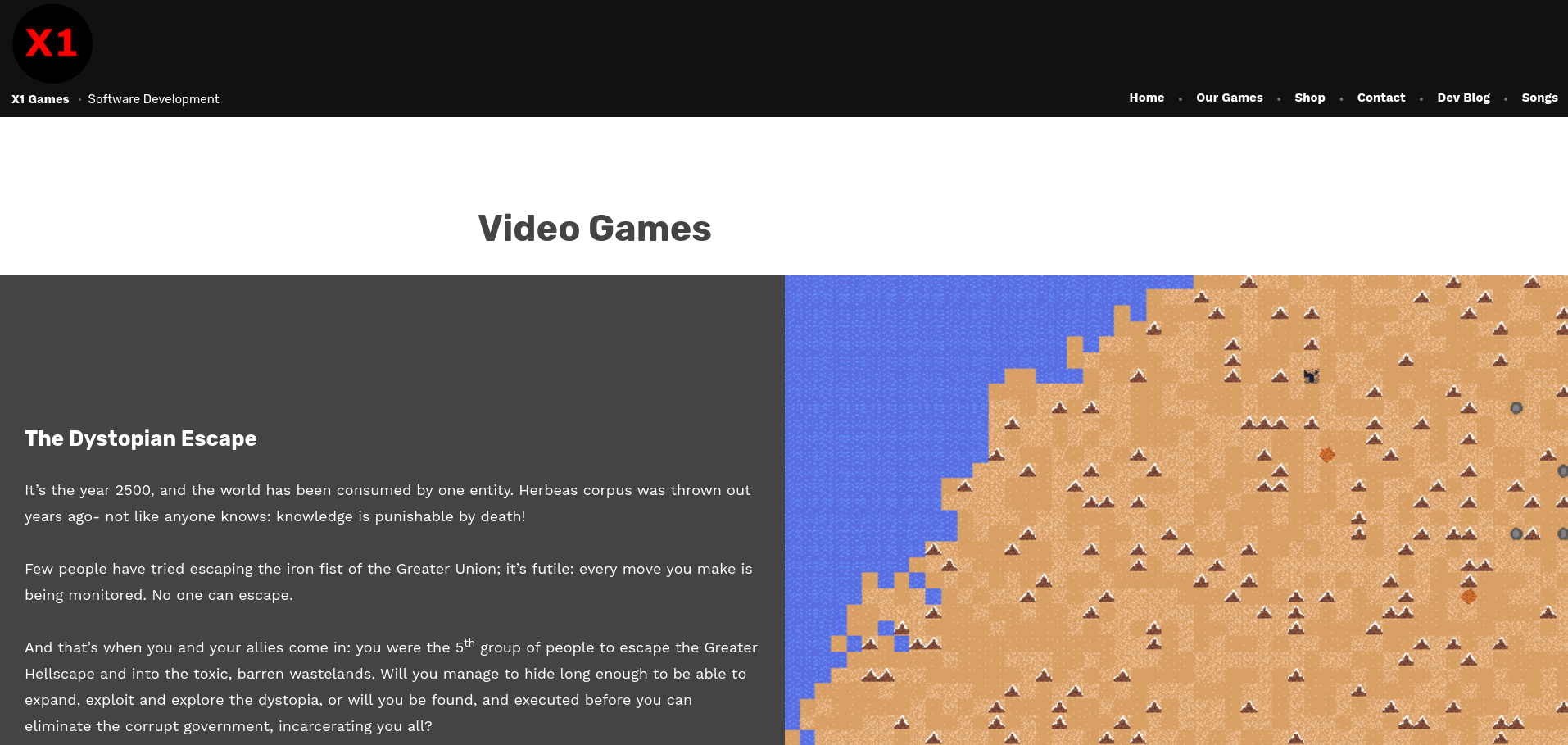 Kristina's personal website from before the founding of X1 Labs. Similar to X1 Indie Gaming, the website uses a no-code solution to create it. In this case, it created a stunning show of all her previous work, used until the founding of the partnership.