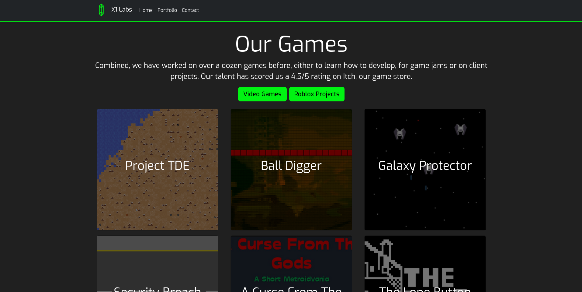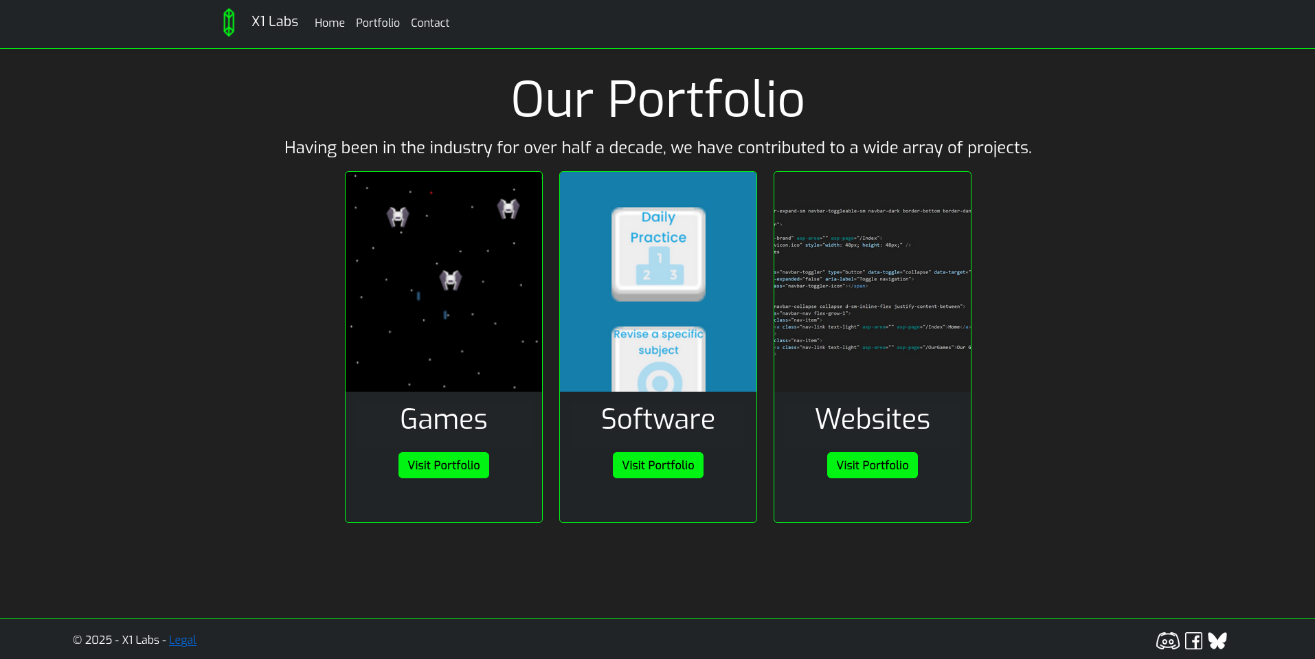 X1 Labs is our flagship website that you are currently on. This was created using CSS, JavaScript, Bootstrap and PugJS. This allows for it to be static (meaning there is no backend, making it very cheap to run), whilst still being performant and attractive to customers.